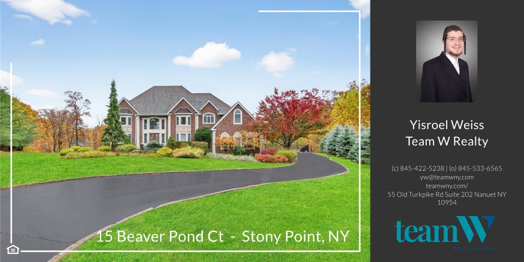 Welcome to 15 Beaver Pond Court in Stony Point — a stately ~5,000 sq ft Colonial set at the end of a private cul-de-sac with serene Hudson Valley mountain views. A grand two-story foyer with decorative columns, crown moldings, and hardwood floors introduces a light-filled plan designed for both everyday comfort and elegant entertaining. Formal living and dining rooms showcase refined millwork and elegant lighting, while the sun-splashed family room impresses with soaring ceilings and a striking stone fireplace framed by expansive windows. The chef’s eat-in kitchen features stainless-steel appliances, stone counters, a tasteful backsplash, peninsula seating, and excellent storage, flowing seamlessly to the entertaining areas and rear yard. A second stairway off the kitchen offers a quick route between levels. The main floor also hosts a private office and a bedroom with its own bath, perfect for guests or multi-generational living. Upstairs, each large bedroom provides access to a bathroom. The immense primary suite includes a fireplace, en-suite bath, an additional powder room, and abundant closet space — a true owner’s retreat. The semi-finished walk-out lower level invites future customization with 15-foot ceilings, a fireplace, plumbing for a bath, and two French doors opening to the yard — an ideal space for a home theater, gym, or guest suite. Outdoors features a fenced yard, patio/deck, and tree-lined views for relaxed gatherings. Smart-home amenities include smart switches, Nest thermostats, security system with cameras, in-ceiling speakers, central vacuum, whole-home humidifier, sprinkler system, and a 3-car garage with EV charger. High ceilings throughout enhance light and volume.