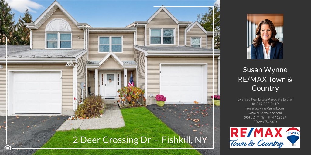 Exceptional! Welcome to this beautifully updated 2-bedroom, 3-bath townhouse nestled in the charming Deer Crossing community of Fishkill. Perfectly situated in a convenient and commuter location, this home offers the best of both worlds—quiet living and accessibility. Step inside to discover an inviting and spacious foyer that sets the tone for the entire home. Attention to detail is evident with gorgeous custom trimwork throughout, an open floor plan, soaring ceilings, a skylight, and a thoughtfully designed shoe shelf to keep your entryway organized!